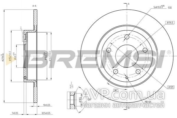 Гальмівний диск задний Mazda 6 12- BREMSI CD8477S